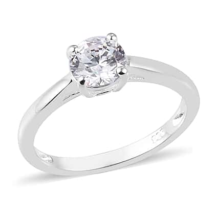 2 Piece Set - Lustro Stella Finest CZ Solitaire Ring and Stud Earrings in Sterling Silver