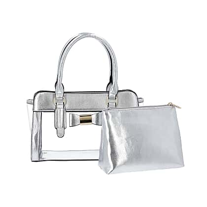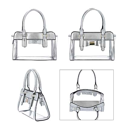 - ARRESTING SATCHEL BAG - Make a fashion statement by carrying the dazzling silver satchel bag made from semi-transparent PVC and the PU leather.