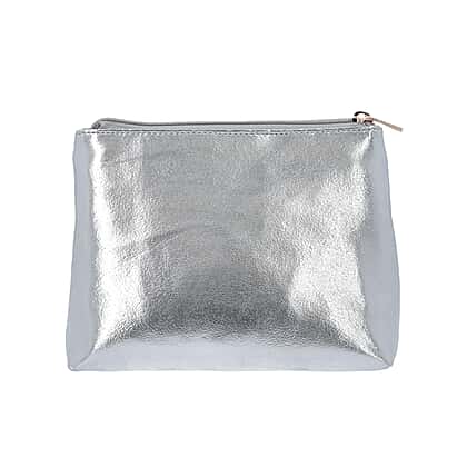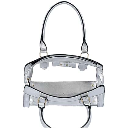 2 Piece Set - Metallic Silver Colour Bowknot Satchel Bag (Size 28x12x16cm) with Zipper Closure and Pouch Bag (Size 20x7x15cm)