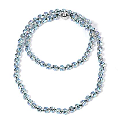 2 Piece Set - Simulated Green AB Crystal Necklace (Size 36) with Magnetic Lock and Stretchable Bracelet (Size 7) in Stainless Steel