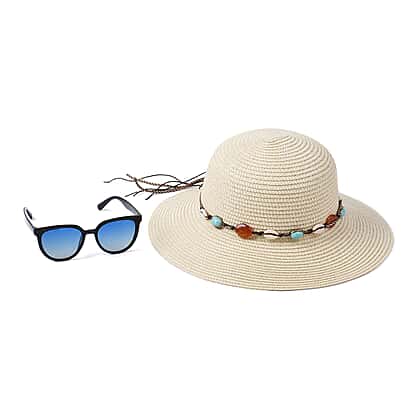 This elegant summer combo of the hat and sunglasses has a beautiful colour scheme and looks fantastic. The fabulous hat is enriched with enhancements around the top and completes the look. It is lightweight, simple and easy to pair with any outfit. It aids in protecting oneself from sunglints. This hat is a must-have for those who love a fashionable look. Accompanied by a pair of sunglasses, this combo is a perfect choice to compliment any dress. The sunglasses with polyurethane lenses and feminine patterns look wonderful while protecting your eyes from harmful UV radiation.