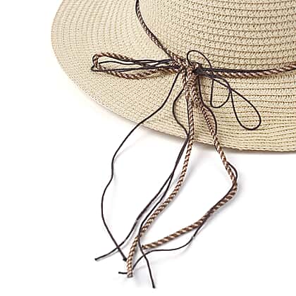 2 Pieces Set - Bowknot Hat with Ribbon and Leopard Pattern Eye Sunglasses - Khaki and Brown