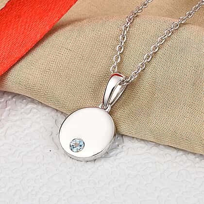 2 Piece Set Aquamarine Pendant and Cable Chain in Sterling Silver