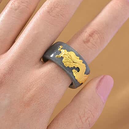 24K Yellow Gold Natural Type A Jadeite Dragon Band Ring 40.00 Ct.