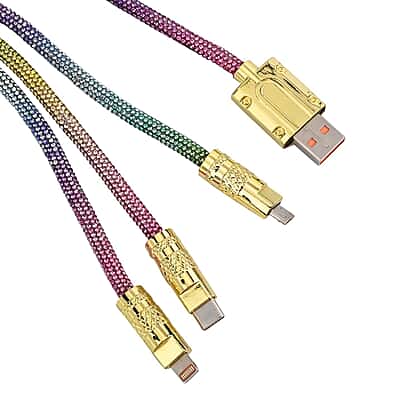 3-IN-1 Crystal Embellished USB Charging Cable (Size - 1m Length) - Multi - Gold