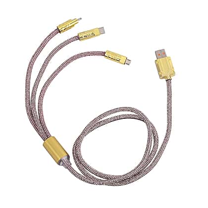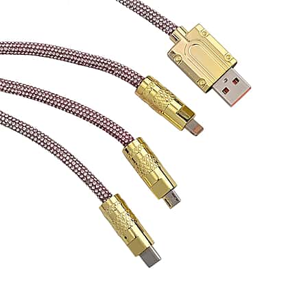 3-IN-1 Crystal Embellished USB Charging Cable (Size - 1m Length) - Pink