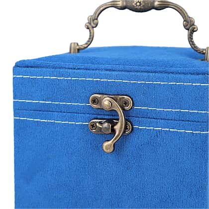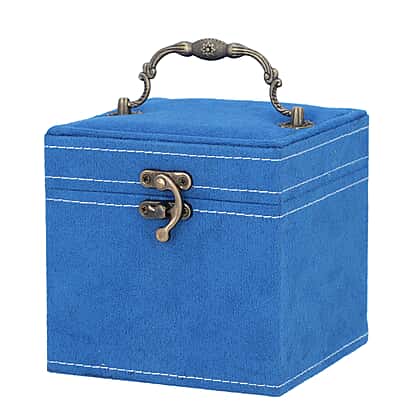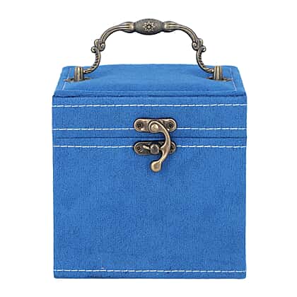 3 Layer Velvet Jewellery Box with Mirror Inside and Lock (Size 12 Cm) - Blue