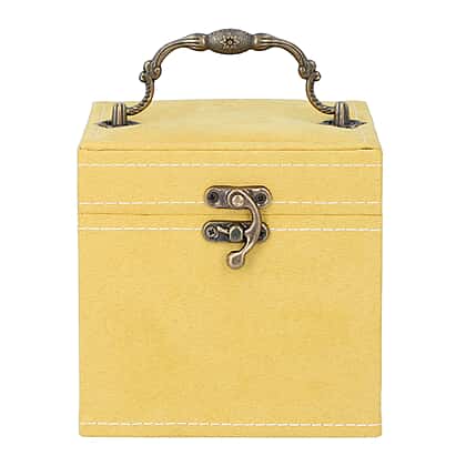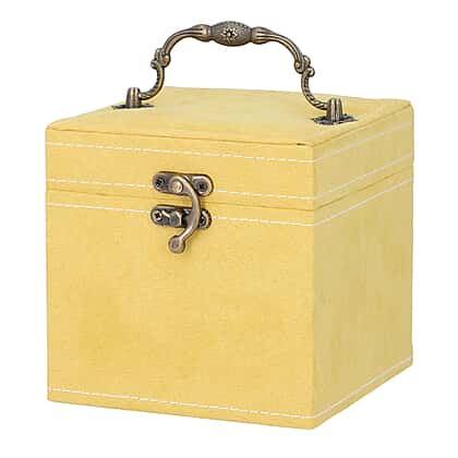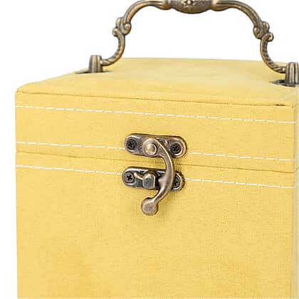 3 Layer Velvet Jewellery Box with Mirror Inside and Lock (Size 12 Cm) - Mustard