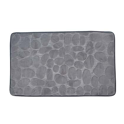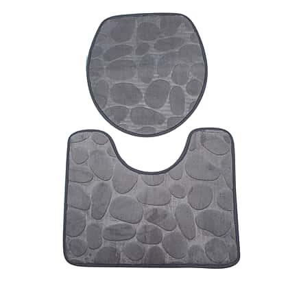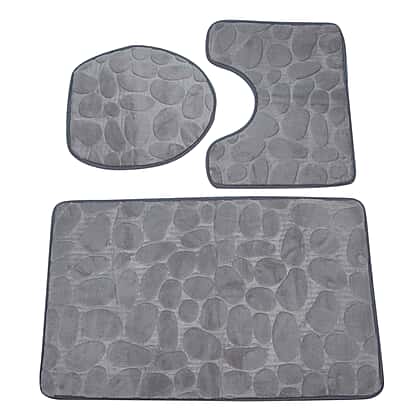 3 Piece Round Stone Embossed Pattern Bathmat Set - Toilet Mat, Bath Mat and Toilet Seat Cover in Grey