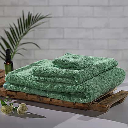 3 Piece Set - 100%Egyptian Cotton Bath Towel (Size 76x137Cm), Hand Towel (Size 41x71Cm) and Face Towel (Size 30 Cm) - Sage Green