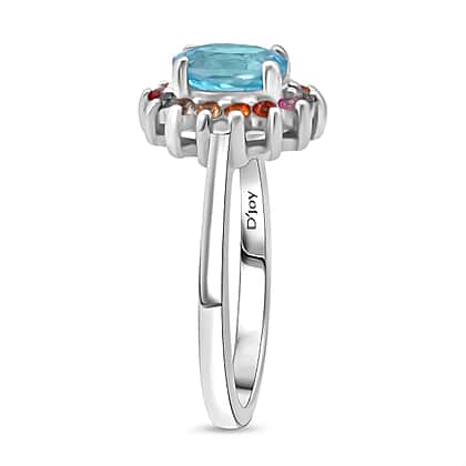 3 Piece Set - D'Joy Blue Zircon & Multi Sapphire Ring (Size - L), Pendant and Earring in Rhodium Overlay Sterling Silver 7.74 Ct.