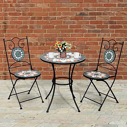- A ROMANTIC TOUCH: Add a romantic touch to your patio, porch, or deck with this mosaic bistro 3-piece set