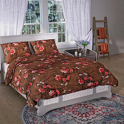 Transform your bedroom into a cosy and stylish retreat with this 3 Piece Set - microfiber quilted printed reversible comforter with two pillow covers. Crafted with premium microfiber material, this comforter is soft, comfortable, durable and easy to care for. The quilted design adds an extra layer of warmth and comfort, making it the perfect addition to your bedding collection. The set also comes with two matching pillow covers, so you can complete the look and create a cohesive and inviting atmosphere in your bedroom. A perfect way to elevate your bedroom decor and create a space you'll love coming home to.