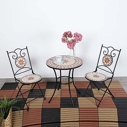3 Piece Set - Square Pattern Mosaic Bistro Set Table and 2 Chairs - Khaki and Multi