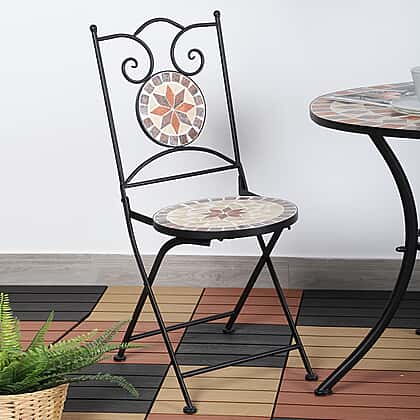 3 Piece Set - Square Pattern Mosaic Bistro Set Table (Size:60x60x70Cm) and 2 Chairs (Size:39x44x90Cm) - Khaki