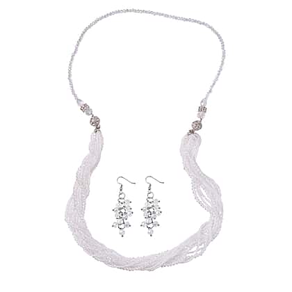 3 Piece Set - White Austrian Crystal Necklace (Size 18 & 16) and Earrings