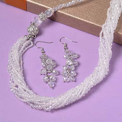 Elevate your jewellery collection with this exquisite 3-piece set of Austrian white crystal necklaces (16 inches & 18 Inch) paired with matching earrings. The 18-inch necklace boasts multi-threaded Austrian crystals, exuding elegance. Each piece is designed to sparkle with a secure and easy-to-use magnetic clasp, ensuring your ensemble is as practical as stunning. The smooth and polished white crystals ensure comfortable wear for long hours.