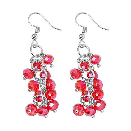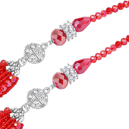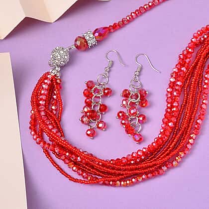 3 Piece Set - White & Red Austrian Crystal Necklace (Size 18 & 16) and Earrings