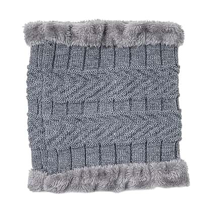 3 Piece Set - Winter Knit Slouchy Beanie Cap, Neck Warmer Scarf and Gloves - Light Grey