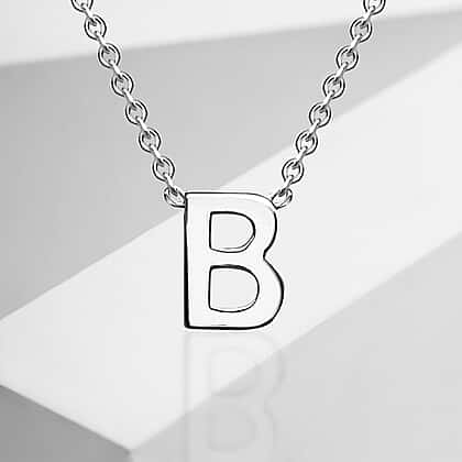 9K White Gold 3.5mm x 5mm 'B' Initial Adjustable Necklace 15 - 17 Inch