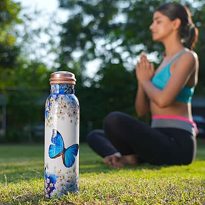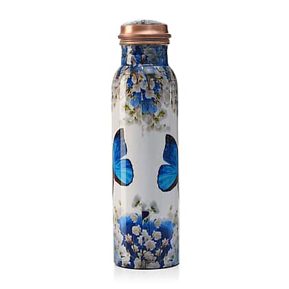 Butterfly Print 100% Leak Proof Copper Bottle 900ml - Blue