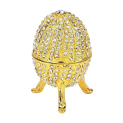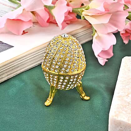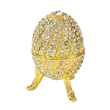 Hand-Painted Crystal Enamelled Easter Egg Trinket Box (Size 6x4 cm) - Gold