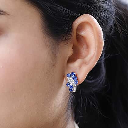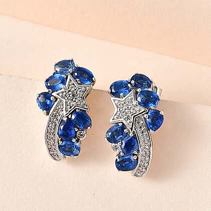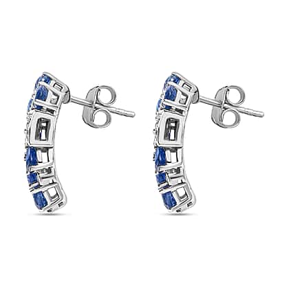 Kashmir Kyanite , Blue Sapphire , White Zircon Solitaire Stud Push Post Earring in Platinum Overlay Sterling Silver 3.95 ct 3.668 Ct.