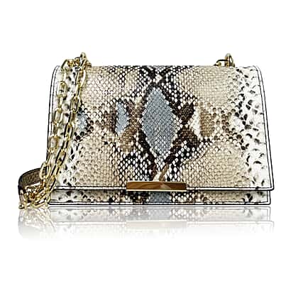 Rome Closeout Deal - Snake Pattern Crossbody Bag- Ivory and Grey