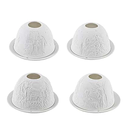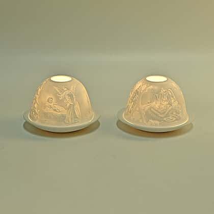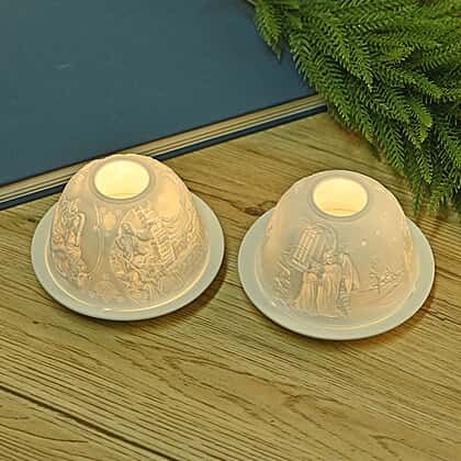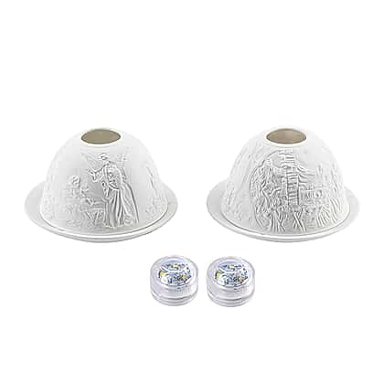 Set of 2 Madonna and Angel Printed Porcelain LED Tealight Candle Holder - White
