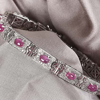 Sunday's Child Ruby with Natural Cambodian Zircon Bracelet in Platinum Plated Sterling Silver 11.50 Ct. Silver Wt. 21.00 gms