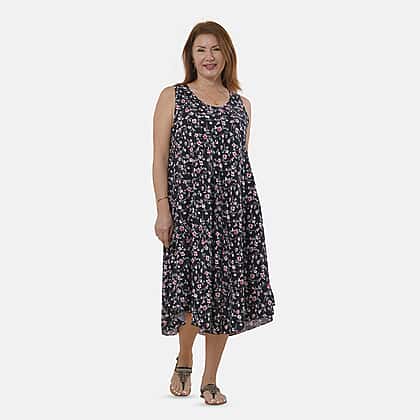 Tamsy 100% Viscose Floral Pattern Dress (Size 105x60 Cm) - Black