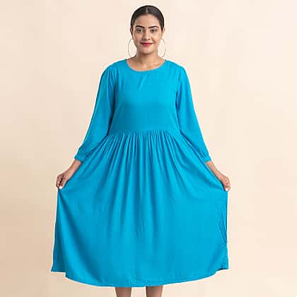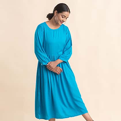 Crafted from the soft and breathable viscose fabric to keep you at ease all day long. The pleated skirt design gives a retro-like appeal to this dress. Designed with a crew neckline to make this dress a casual staple. The regular three-quarter sleeves make this dress a perfect option for summer. Simply style this midi dress with a pair of sneakers for an effortless everyday look.