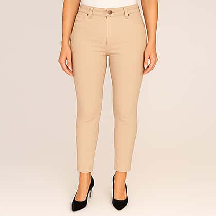 Classic Womens Jean Style Stretch Trousers With 29Inch Leg (Size 12) - Soft Almond