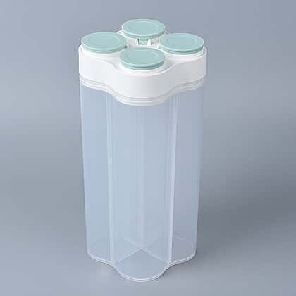 - DESIGN: Four different types of edibles can be stored in the four storage spaces without being mixed up