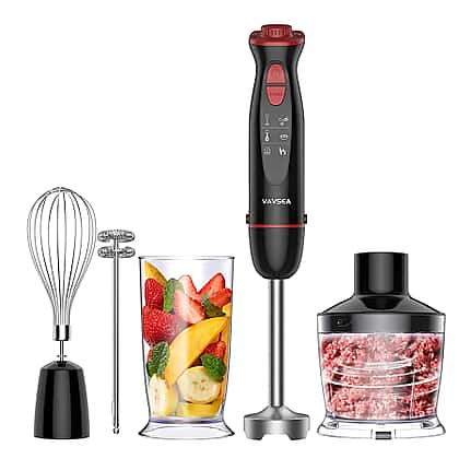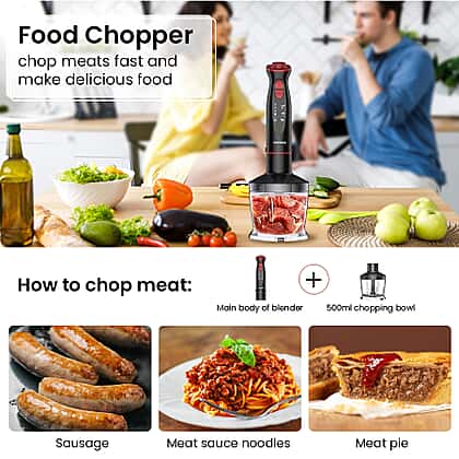 • 5-in-1 immersion blender to meet your various needs for mixing, chopping, egg-beating and baby food