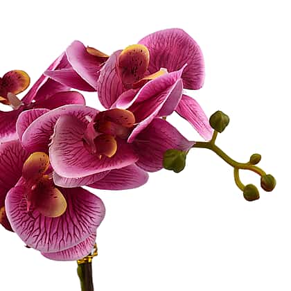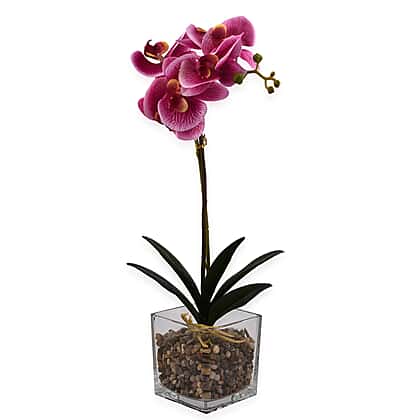 Transform your space into a serene oasis with the 6-Head Butterfly Orchid Flower Foliage with Cobblestone. Delicate and enchanting, each butterfly orchid bloom brings a touch of nature's beauty indoors. The lifelike foliage complements the vibrant flowers, creating a captivating display. Paired with the rustic charm of the cobblestone base, this faux flower arrangement adds elegance to any room. Embrace the tranquillity and timeless allure of nature with this stunning decorative piece.