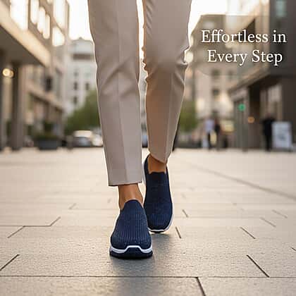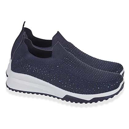 Walking comfortably through everyday plans becomes effortless with these slip-on trainers, created with a soft knit upper that moves naturally with the foot. The subtle diamond detailing adds a gentle sparkle, giving the navy shade a refined edge that suits everything from weekend denim to laid-back work looks. A soft insole delivers noticeable comfort from morning to evening, while the lightweight build keeps each step feeling easy. The slip-on style makes heading out simple, offering a practical choice for errands, social plans or relaxed strolls. Blending comfort with understated style, they make a dependable addition to daily wardrobes.