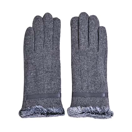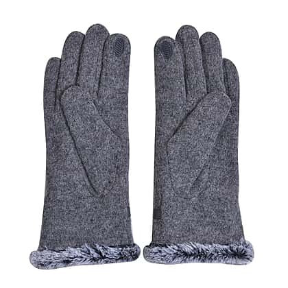70% Cashmere Fauux Fur Gloves (Size 25x9Cm) - Grey