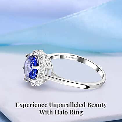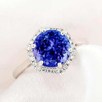 Appraised and Certified RHAPSODY 950 Platinum AAAA Tanzanite, White Diamond VS Halo Ring 3.00 Ct.