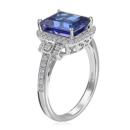 Certified and Appraised RHAPSODY 950 Platinum AAAA Tanzanite and Diamond VS-EF Ring, Platinum 7.16 grams 4.000 Ct