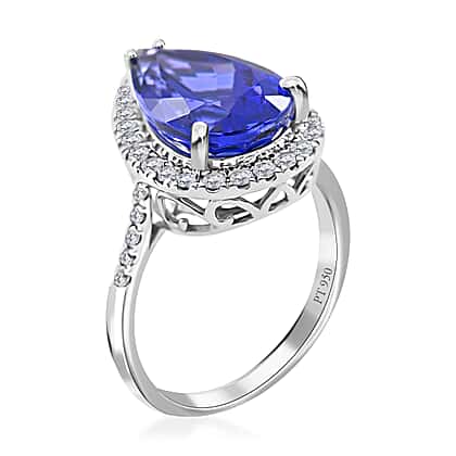 950 Platinum AAAA Tanzanite White Diamond VS Ring 6.25 pc, Platinum Wt. 5.98 Gms 6.250 Ct.