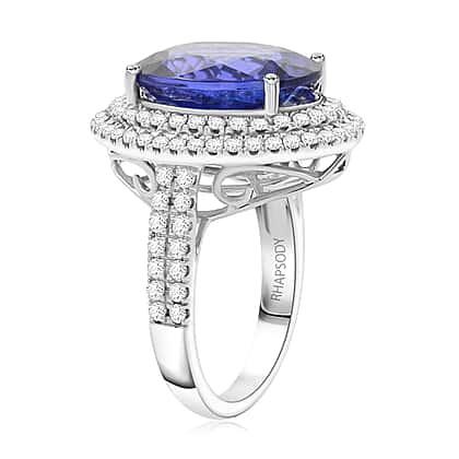 Certified and Appraised RHAPSODY 950 Platinum AAAA Tanzanite White Diamond VS Ring 9.60 ct, Platinum Wt. 9.61 Gms