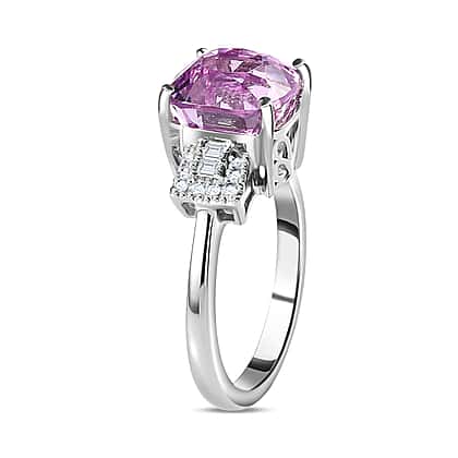 - Lavish solitaire ring studded with AAAA Patroke Kunzite Cushion, diamond accents.