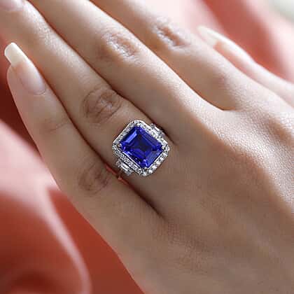 950 Platinum AAAA Tanzanite & Diamond (VS, E-F) Ring 5.59 Ct, Platinum Wt. 5.26 Gms Size L (Resize To I,J,K,M,N,O)