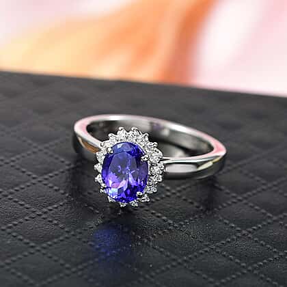 Appraised and Certified RHAPSODY 950 Platinum AAAA Tanzanite, White Diamond EF, VS Halo Ring, 1.70 Ct.