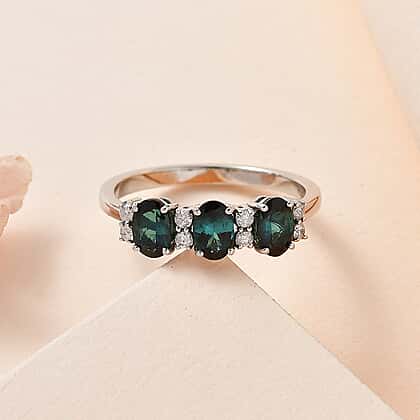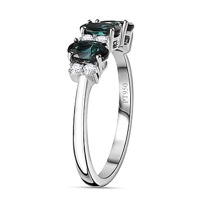 950 White Platinum AAA Mutuca Indicolite & Diamond Ring 1.68 Ct, Plt Wt. 4.44 Gms