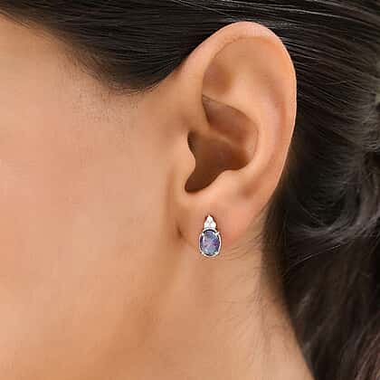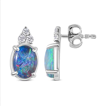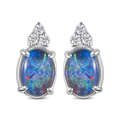 9K White Gold AA Boulder Triplet Opal , Moissanite Solitaire Stud Push Post Earring 1.32 ct, Gold Wt. 0.7 Gms 1.460 Ct.
