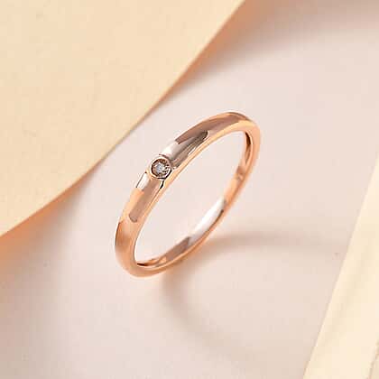 9K Rose Gold Natural Champagne Diamond Solitaire Wedding Band Ring