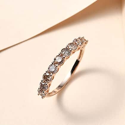 9K Rose Gold Natural Champagne Diamond Half Eternity Ring 1.00 Ct.