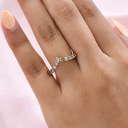The charm and luxury of this white diamond gold ring will create a magnetic effect on each onlooker and compel them to admire its enchanting beauty. The outstanding wishbone style of this ring makes it ideal to be presented to someone you adore the most. Expert artisans have designed and crafted this ring using the precious 9K rose gold. The V-shaped head is decorated with pieces of round faceted-cut diamonds, exhibiting their charming lustre and creating a coveting sparkle. Adding this ring to your attire will grace your looks.